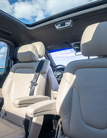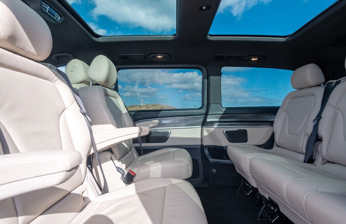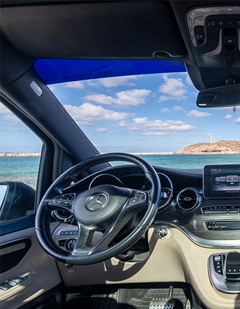 Our experienced driver Haris has the necessary skill and knowledge to transport you anywhere on our island safely in the best possible way. Our Mercedes V 220 Luxury Van has ample spaces, ultimate luxury and all the comforts so that you will not miss anything during your trip with it.